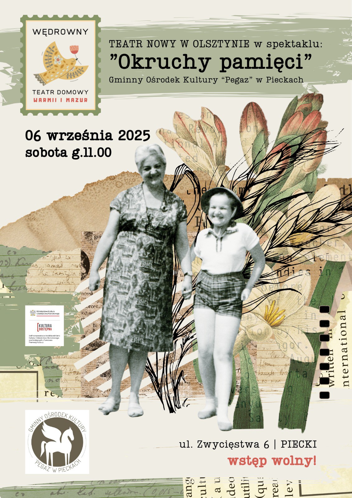Zapraszamy na spektakl „Okruchy pamięci” opowiadający historię wiejskiej rodziny, jej codziennych zwyczajów, tradycji i przemijania. Spektakl powstał w oparciu o rozmowy z najstarszymi mieszkańcami Warmii i Mazur i można go oglądać zarówno w większych salach, jak i w kameralnych warunkach domowych.