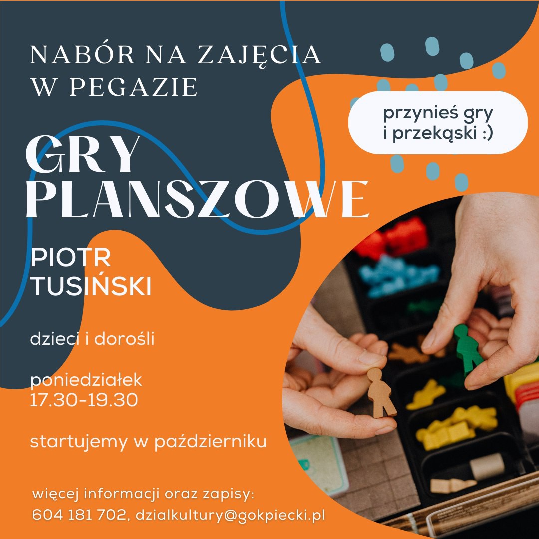 Gminny Ośrodek Kultury w Pieckach zaprasza dzieci i dorosłych na spotkania z grami planszowymi, które poprowadzi Piotr Tusiński.
