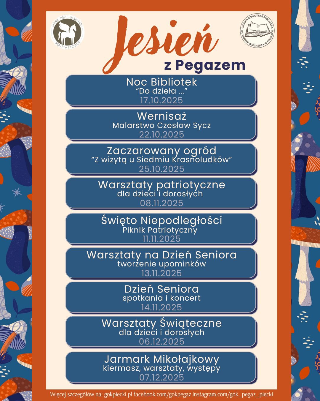 Gminny Ośrodek Kultury w Pieckach zaprasza na "Jesień z Pegazem".