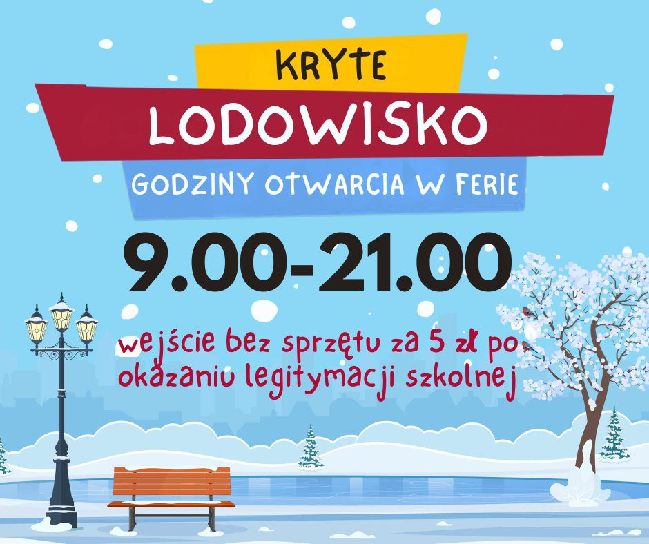 Od 19 stycznia do 1 lutego 2026 roku każdy uczeń z Mrągowa z ważną legitymacją szkolną będzie mógł skorzystać z tafli lodu w promocyjnej cenie 5 zł za wejście (bez sprzętu).