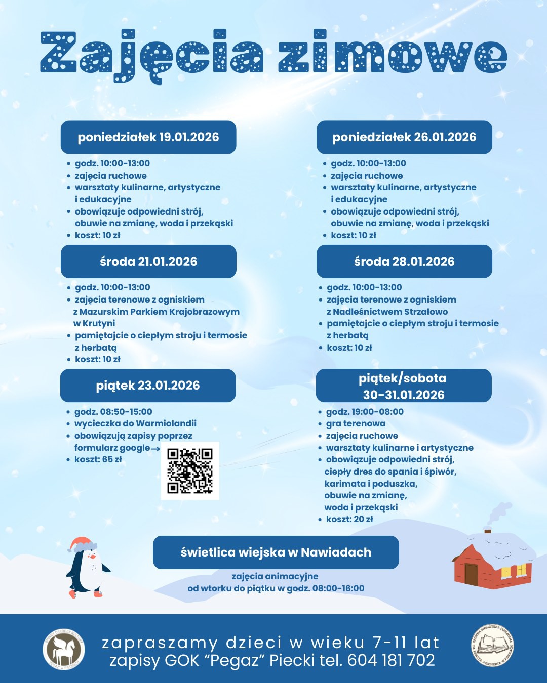 Zapraszamy dzieci w wieku 7-11 lat, zapisy GOK “Pegaz” Piecki tel. 604 181 702 Liczba miejsc ograniczona!