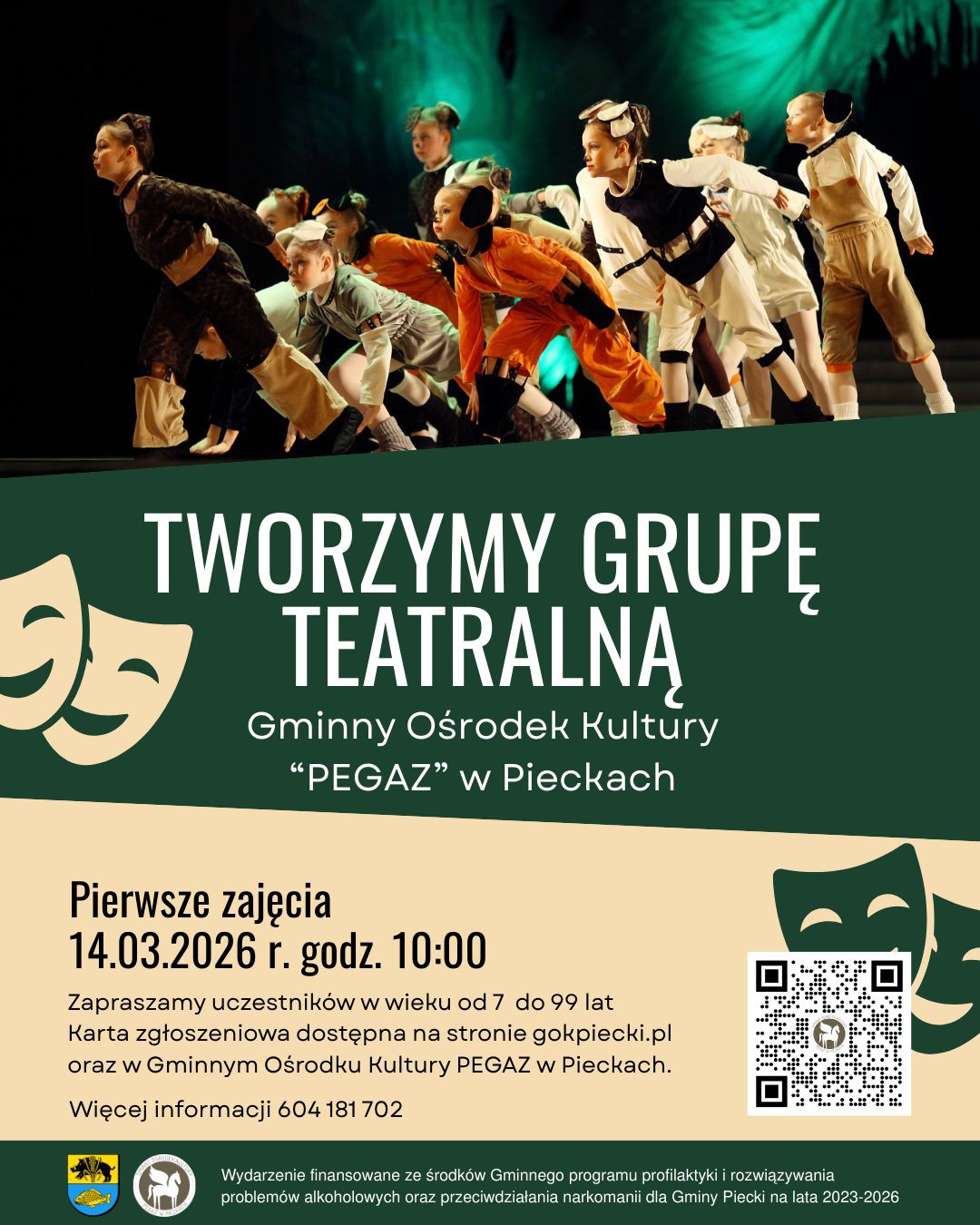 Masz ochotę spróbować swoich sił na scenie? Chcesz przeżyć coś wyjątkowego, poznać inspirujących ludzi i stworzyć spektakl z ważnym przesłaniem? To właśnie dla Ciebie powstaje nowa grupa teatralna w Gminie Piecki!