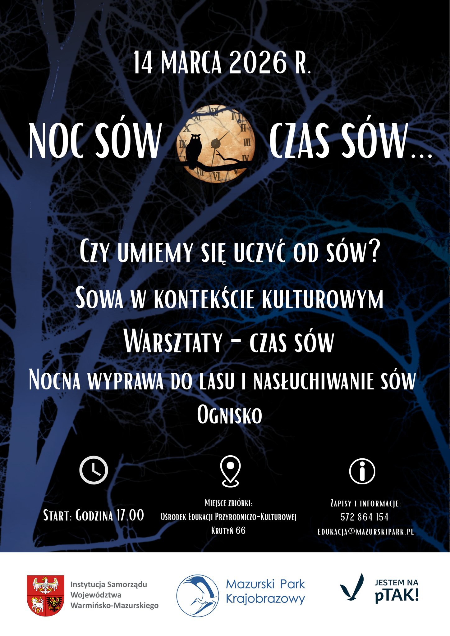 Już 14 marca 2026 roku Mazurski Park Krajobrazowy zaprasza na wyjątkowe wydarzenie – Noc Sów 2026, poświęconą najbardziej tajemniczym mieszkańcom mazurskich lasów. To niezwykła okazja, by poznać fascynujący świat sów, ich zwyczaje, znaczenie w kulturze oraz rolę w przyrodzie.