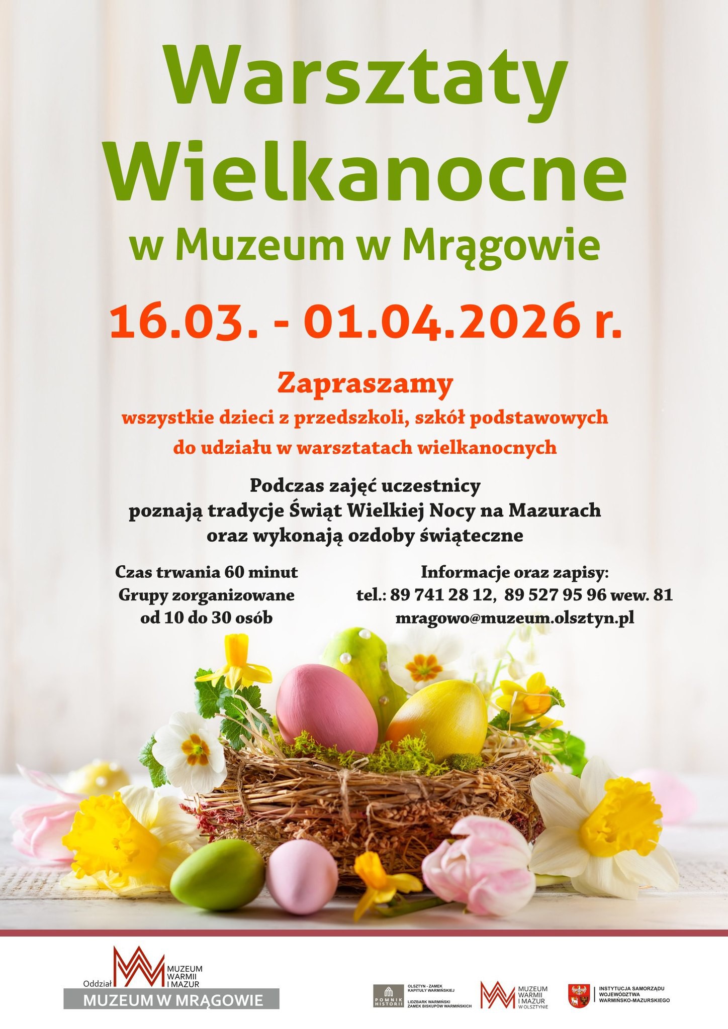Wraz ze zbliżającymi się Świętami Wielkanocnymi zapraszamy grupy zorganizowane dzieci na wyjątkowe warsztaty wielkanocne w Muzeum w Mrągowie (centrum miasta, zabytkowy ratusz)! To świetna okazja, aby w kreatywny sposób poznać tradycje świąteczne i własnoręcznie przygotować piękne ozdoby wielkanocne.