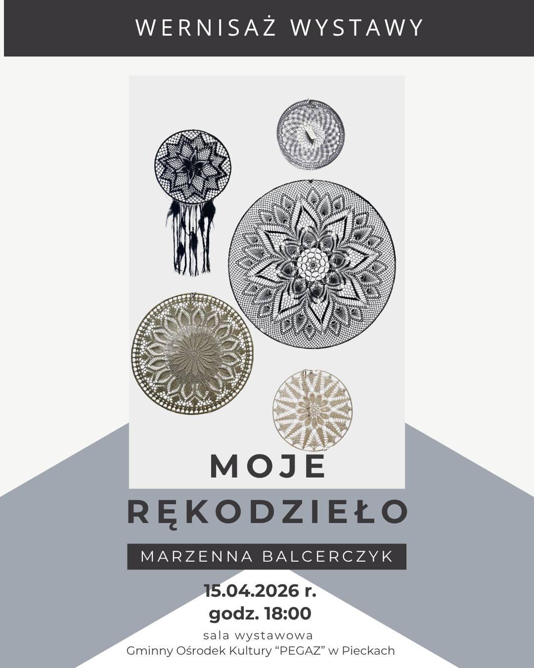 Gminny Ośrodek Kultury „Pegaz” w Pieckach zaprasza na wyjątkowe wydarzenie artystyczne. W najbliższą środę 15 kwietnia 2026 progi GOK-u wypełnią się misternymi splotami, kolorami i pasją, a wszystko to za sprawą wystawy „Moje Rękodzieło”, której autorką jest Pani Marzenna Balcerczyk.