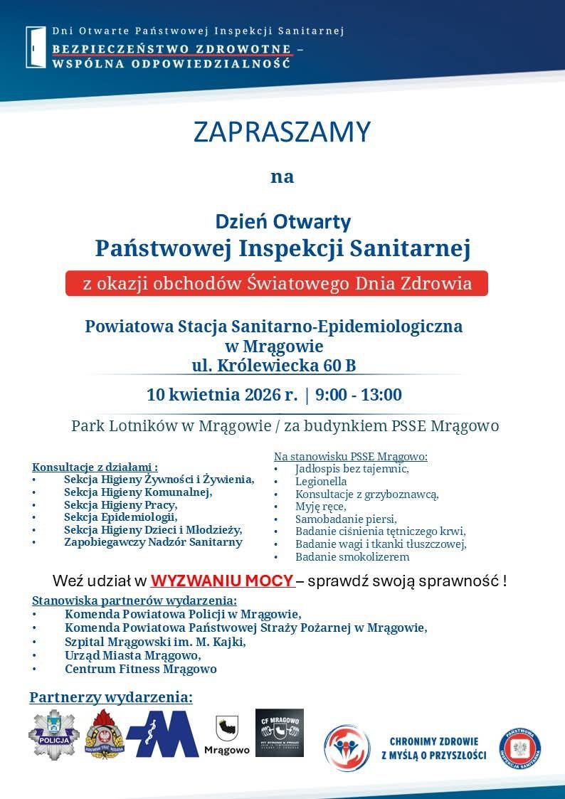 Z okazji obchodów Światowego Dnia Zdrowia, Powiatowa Stacja Sanitarno-Epidemiologiczna w Mrągowie zaprasza wszystkich mieszkańców na wydarzenie plenerowe. Pod hasłem "Bezpieczeństwo zdrowotne – wspólna odpowiedzialność" Stacja otwiera swoje drzwi, by wspólnie promować zdrowy styl życia i profilaktykę.