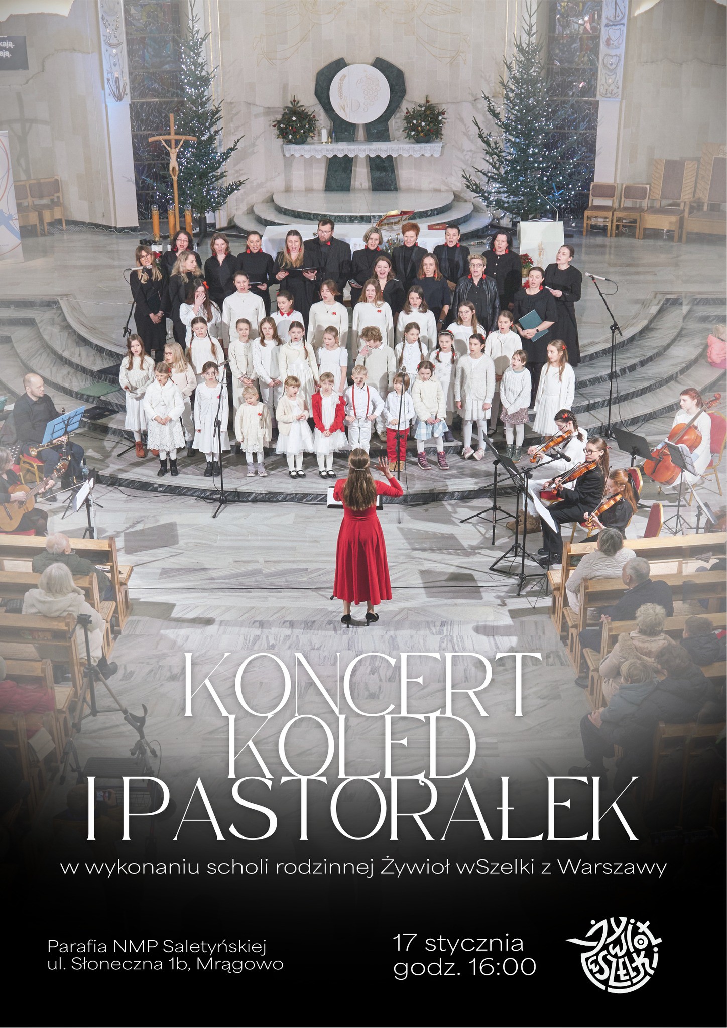 W sobotę, 17 stycznia o godz. 16:00, w Parafii Najświętszej Maryi Panny Saletyńskiej w Mrągowie odbędzie się wyjątkowy Koncert Kolęd i Pastorałek w wykonaniu scholi rodzinnej Żywioł wSzelki.