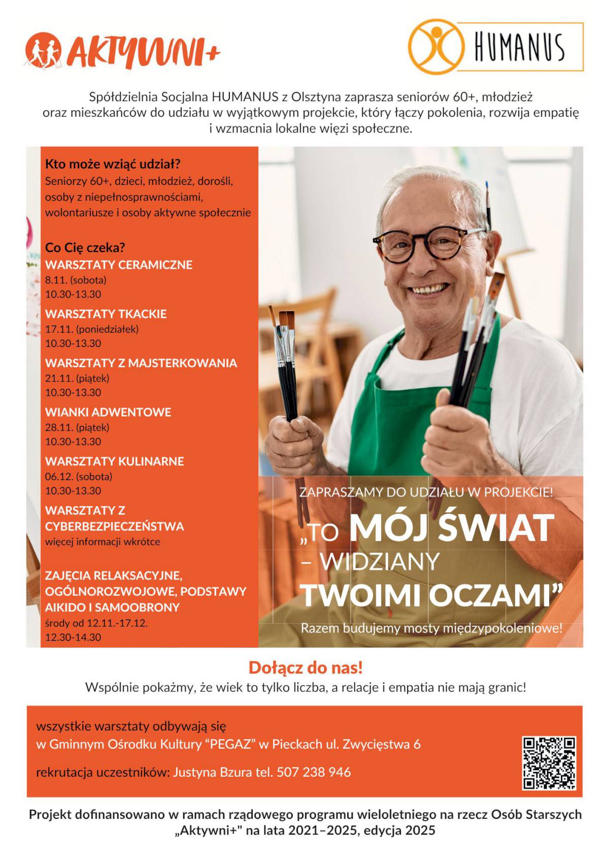 Spółdzielnia Socjalna HUMANUS z Olsztyna zaprasza seniorów 60+, młodzież oraz mieszkańców do udziału w wyjątkowym projekcie, który łączy pokolenia, rozwija empatię i wzmacnia lokalne więzi społeczne.