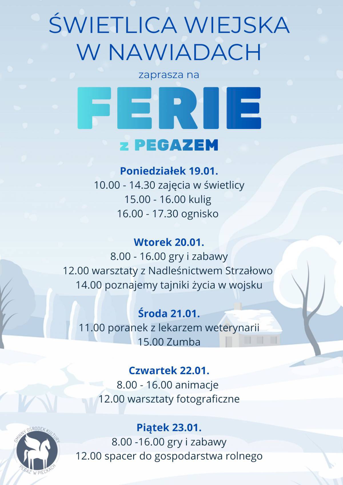 Zapraszamy dzieci na pełne atrakcji Ferie z Pegazem w świetlicy w Nawiadach.
