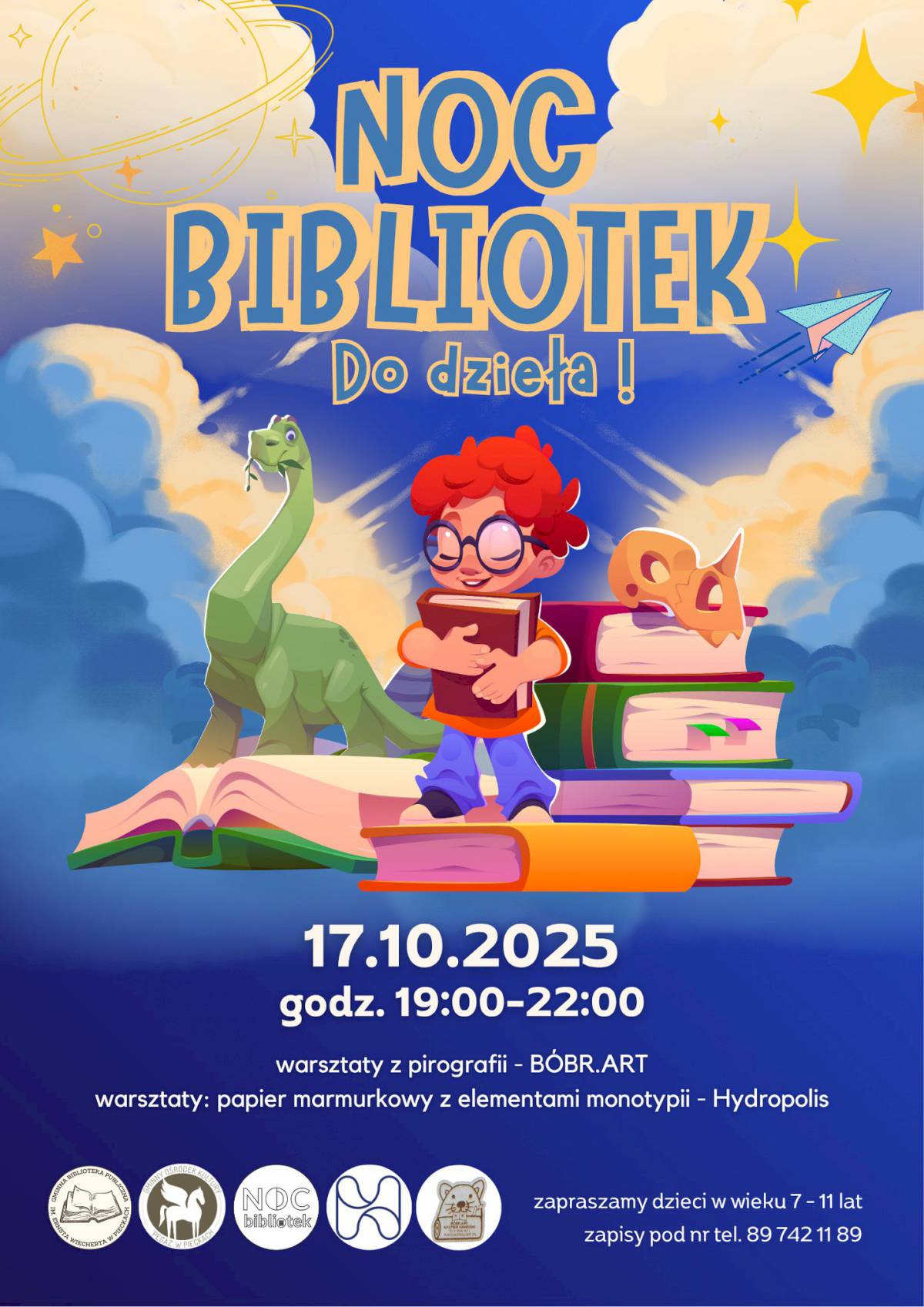 Gminny Ośrodek Kultury "Pegaz" w Pieckach zaprasza dzieci w wieku 7 - 11 lat na Noc Bibliotek.