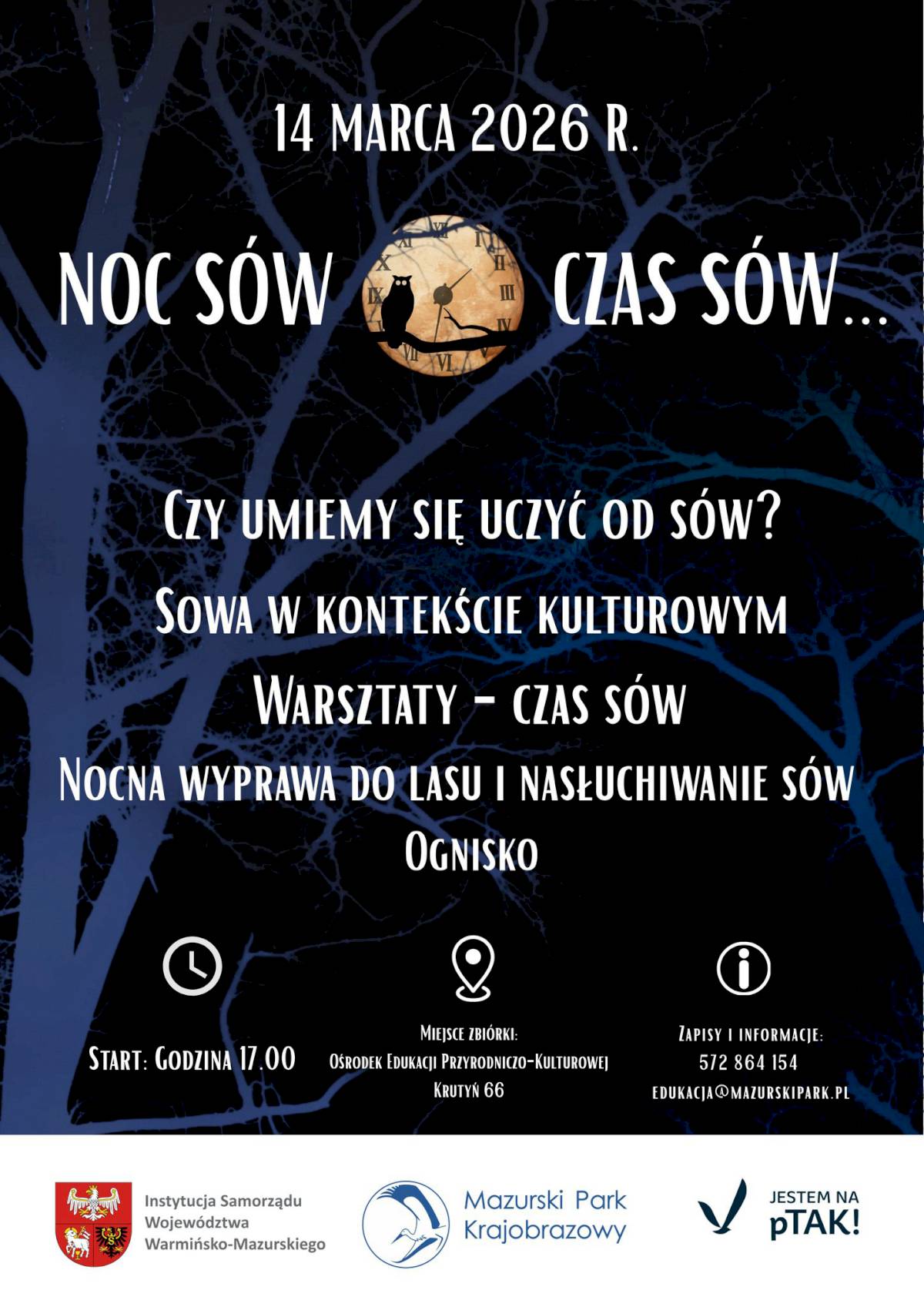 Już 14 marca 2026 roku Mazurski Park Krajobrazowy zaprasza na wyjątkowe wydarzenie – Noc Sów 2026, poświęconą najbardziej tajemniczym mieszkańcom mazurskich lasów. To niezwykła okazja, by poznać fascynujący świat sów, ich zwyczaje, znaczenie w kulturze oraz rolę w przyrodzie.