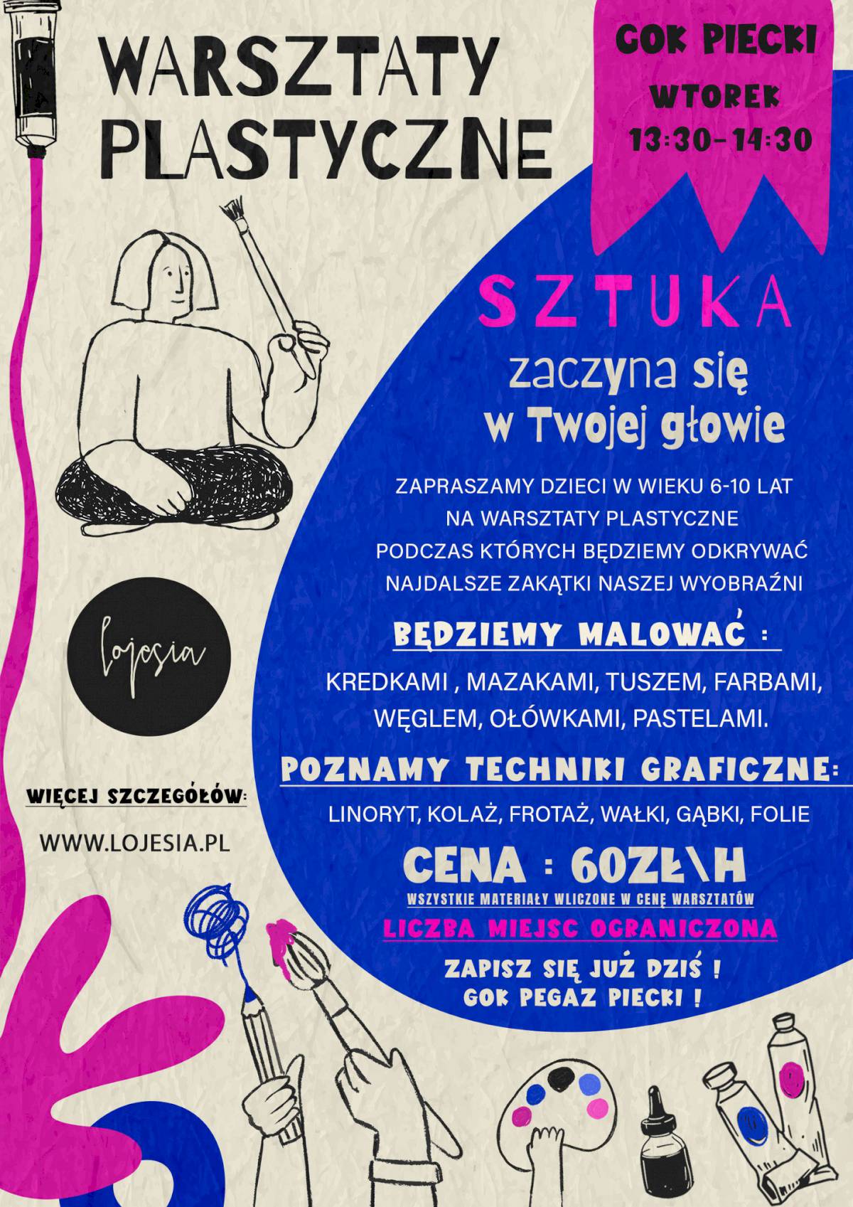 Gminny Ośrodek Kultury "Pegaz" w Pieckach zaprasza na Warsztaty plastyczne.