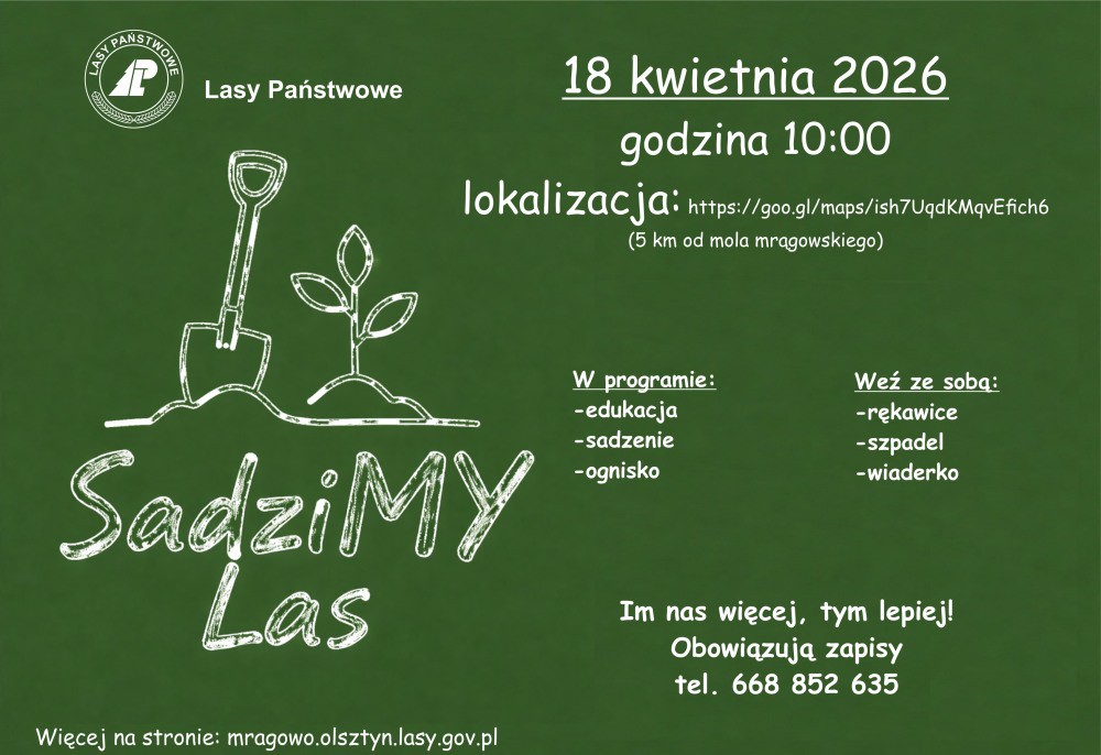 W sobotę 18 kwietnia 2026 r. o godz. 10:00 Nadleśnictwo Mrągowo zaprasza do wspólnego sadzenia lasu!
