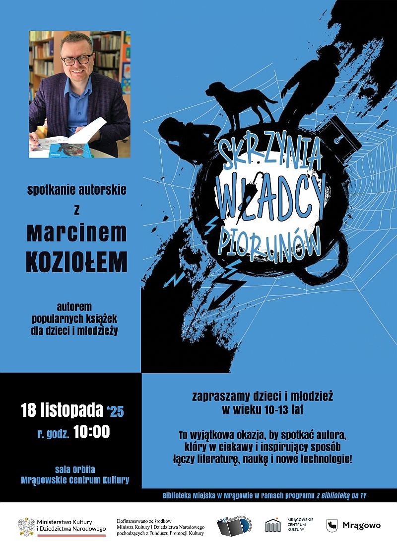 Biblioteka Miejska w Mrągowie serdecznie zaprasza na wyjątkowe spotkanie autorskie z Marcinem Koziołem – autorem książek dla dzieci i młodzieży.