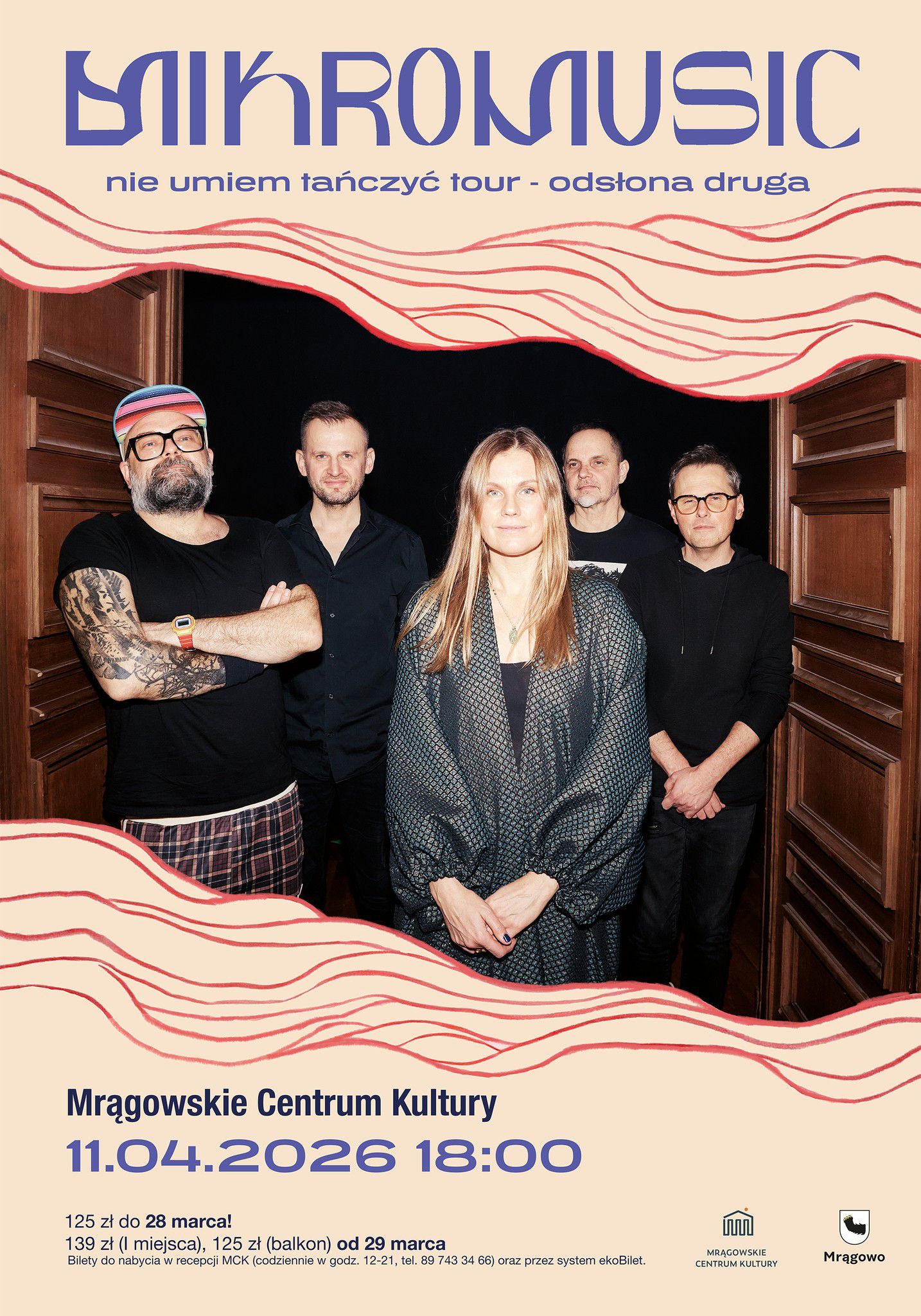 Bilety do nabycia codziennie w recepcji Mrągowskiego Centrum Kultury w godz. 12:30-19:30, tel. 89 743 34 66 oraz online