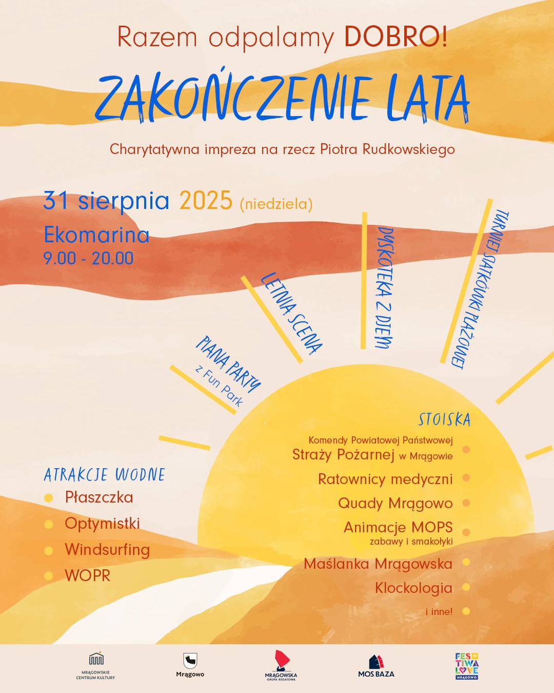 Przed nami pełen atrakcji, muzyki i sportowych emocji dzień, w którym łączymy dobrą zabawę z pomaganiem! Spotkajmy się nad jeziorem, by razem wesprzeć Piotra Rudkowskiego.