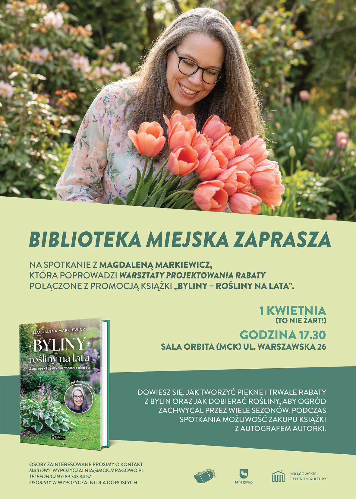 Biblioteka Miejska w Mrągowie szaprasza wszystkich pasjonatów ogrodnictwa na wyjątkowe wydarzenie. Już wkrótce gościć będziemy Magdalenę Markiewicz – ekspertkę, która podzieli się wiedzą o tworzeniu trwałych i zachwycających rabat.